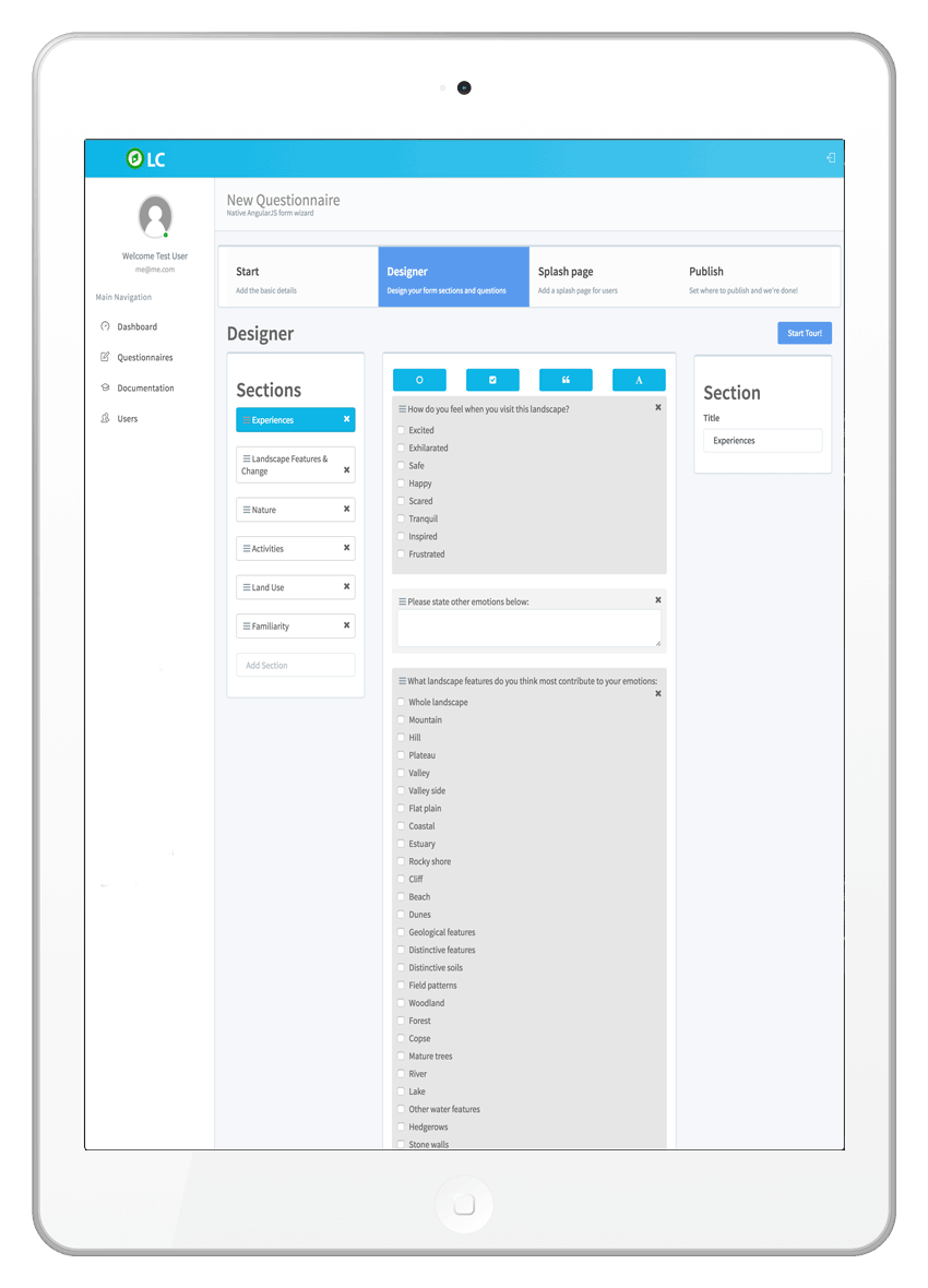 Creating a new form has never been simpler. Simply drag and drop questions to build a questionnaire. Collecting data back from questionnaires is done automatically as soon as the device has an internet connection.